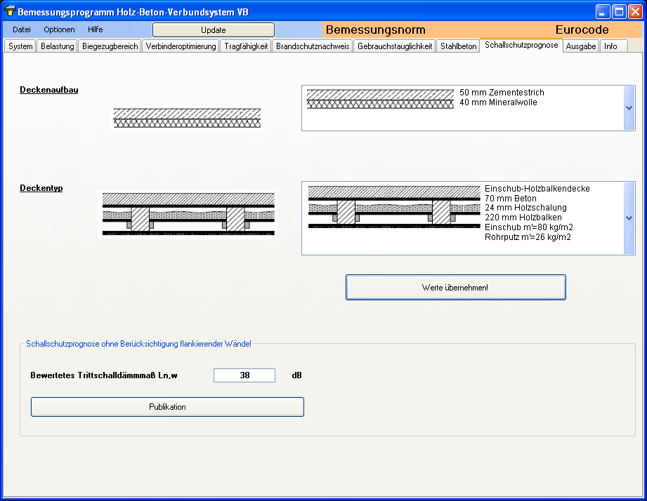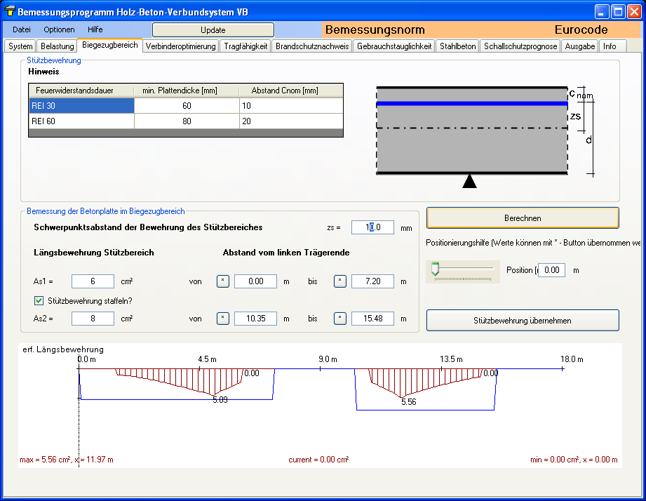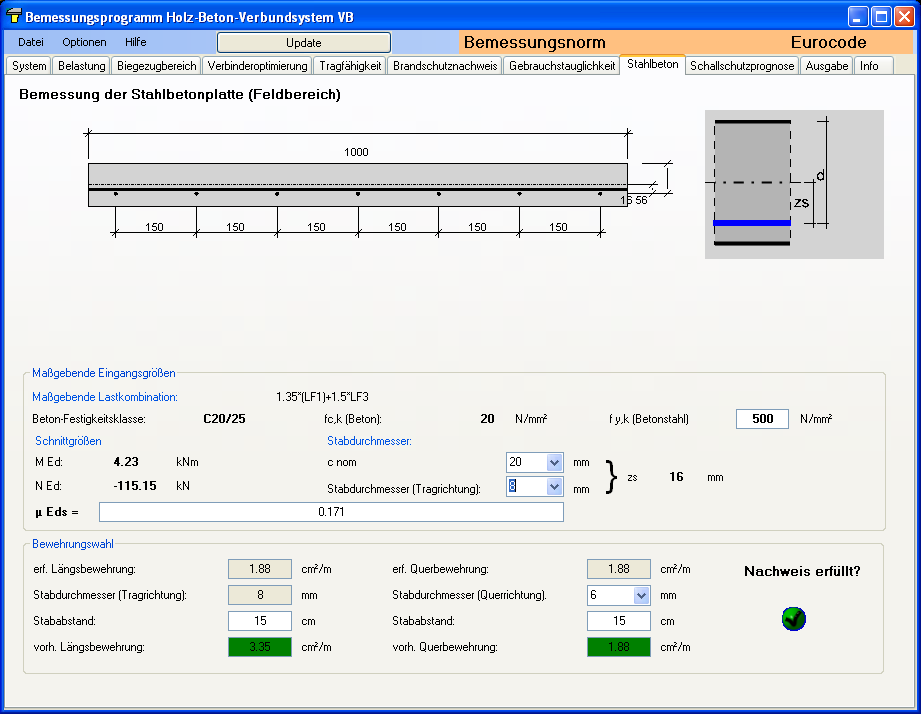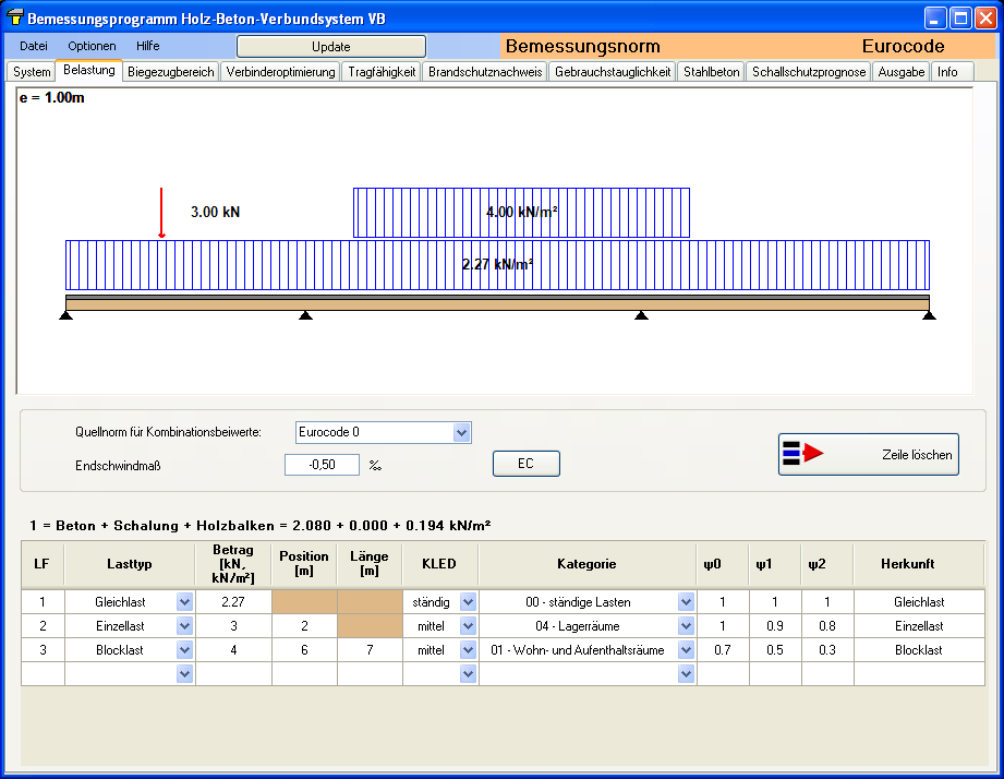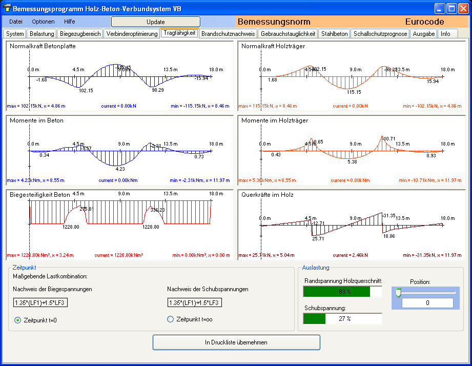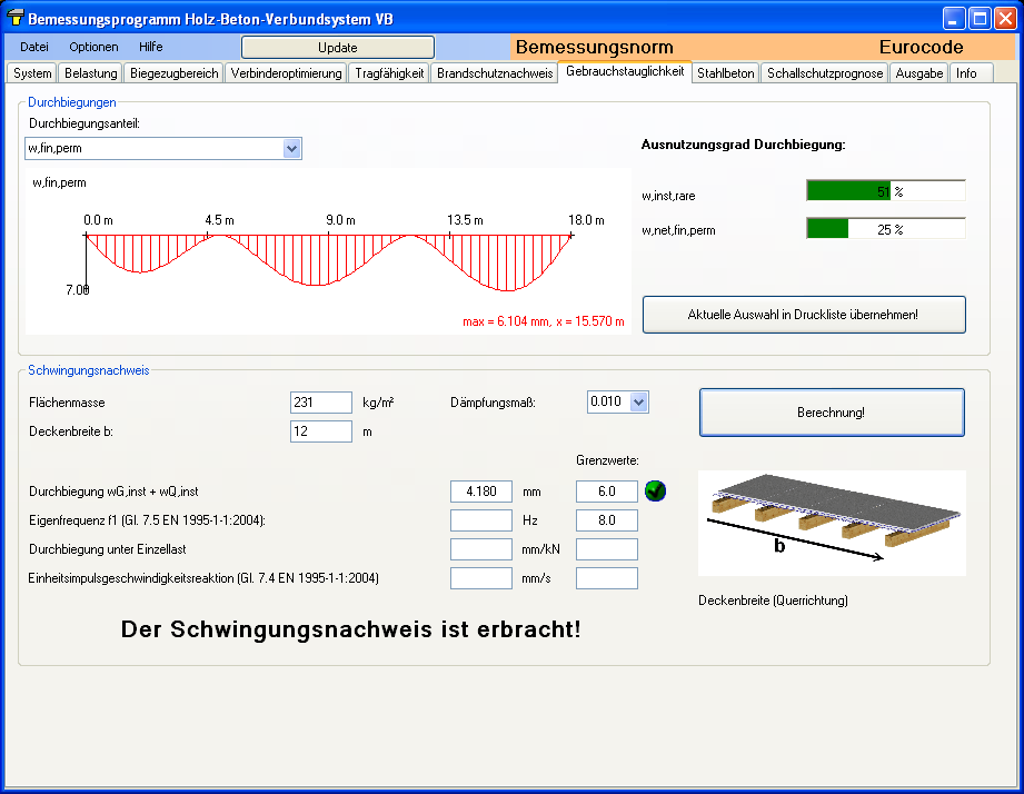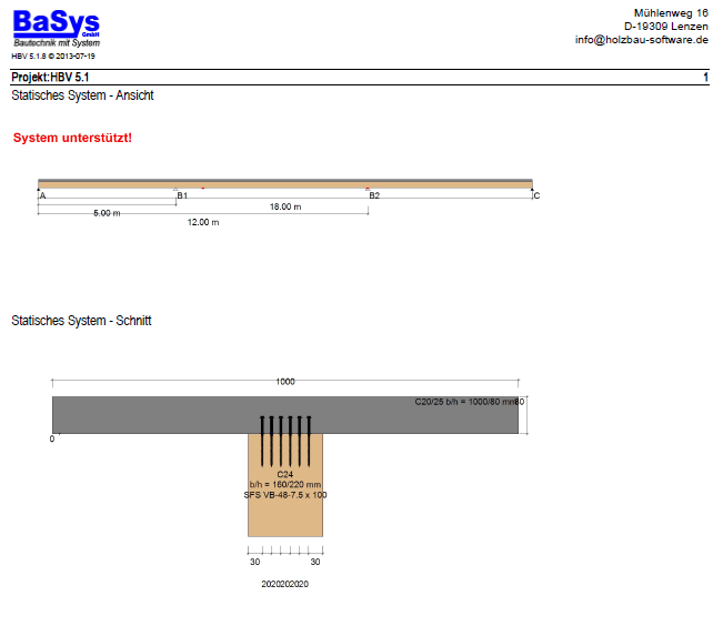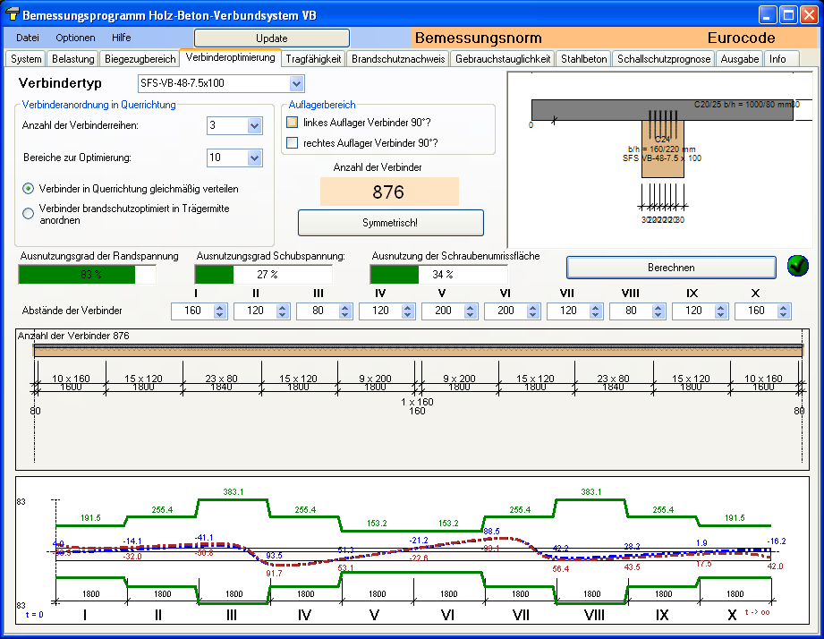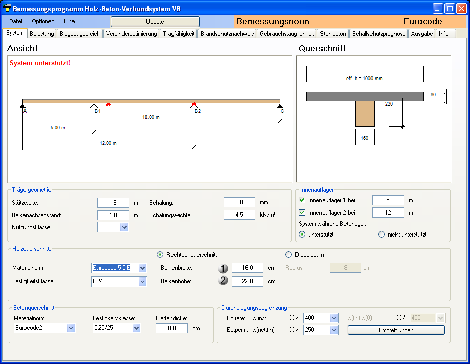Die Bemessungssoftware für Holz-Beton-Verbundträger liegt derzeit in der Version 6.0.7 vom 21.08.2019 vor. Das Programm ermöglicht die Anfertigung prüffähiger Nachweise für Ein- und Mehrfeldträger in Holz-Beton-Verbundbauweise mit SFS Verbindern VB-48-7.5x100 und VB-48-7.5x160 nach ETA 13/0699 in Verbindung mit der bauaufsichtlichen Zulassung Z-9.1-342.