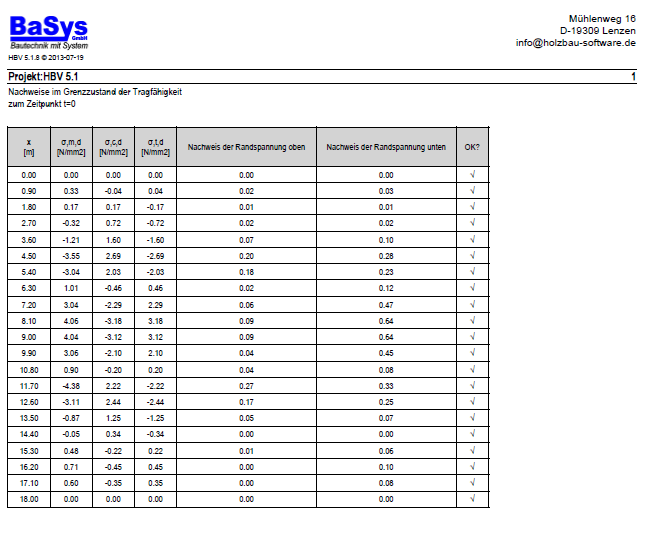 Ergebnisübersicht für Tragfähigkeitsnachweise